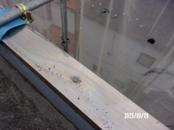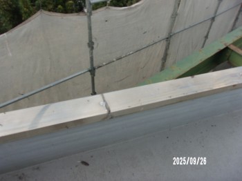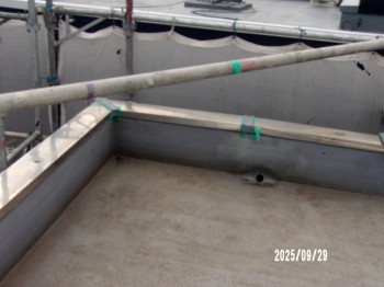 ステン笠木で繋ぎはハンダ溶着、経年劣化でハンダが切れて、反り浮きが出ます、